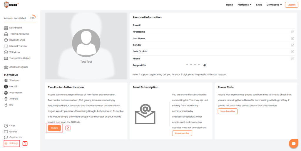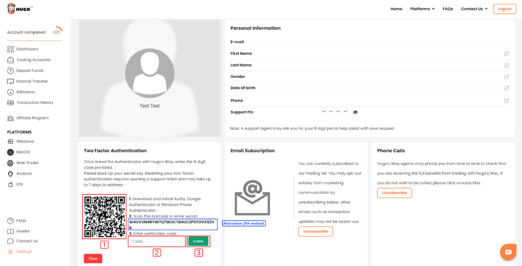 You now have an option to enable Two-factor authentication (2FA) on your Hugo’s Way account. You can quickly protect your account and data from unauthorised access attempts with this simple guide.
